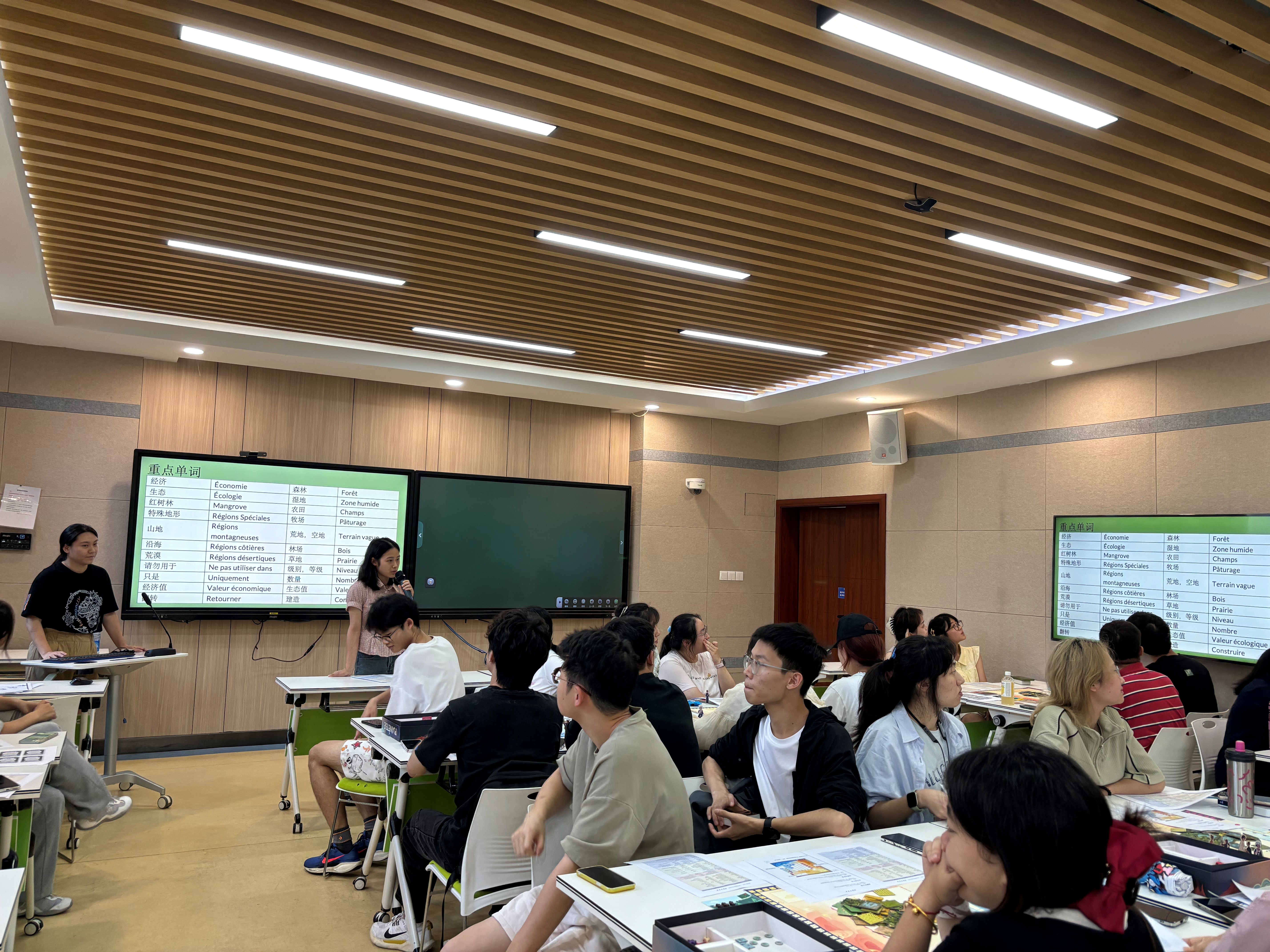 工作坊突破传统语言教学模式,巧妙融合法语应用与生态议题研讨。通过桌游的形式,学生围绕《中国的生物多样性保护》白皮书、IPCC第六次评估报告等权威文献展开讨论,并结合《生命世界多样性》专业课程知识进行跨学科探索。该创新教学设计曾亮相2021年联合国气候大会(COP27),获得国际教育界关注。