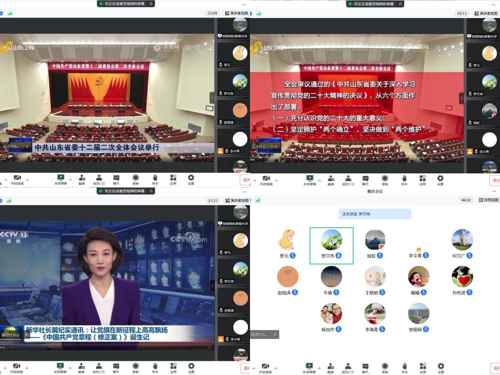 党委书记罗文伟带领学习了《让党旗在新征程上高高飘扬——<中国共产党章程(修正案)>诞生记》、中共山东省委十二届二次全体会议精神以及《习近平谈治国理政》第四卷中的重要文章《新时代党和人民奋进的必由之路》。会议由学院党委书记罗文伟主持。