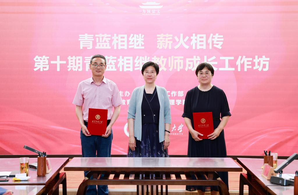教授孙俊才受聘第十批“青年教师成长导师”,李志红为两位成长导师颁发证书。