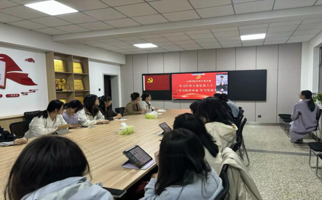 308室,线上同步开通腾讯会议)开展主题党日活动,专题学习灯塔大课堂第六十一课《学习榜样事迹 争当发展先锋》。本次活动由党支部书记朱伟卫主持,全体本科生党支部党员参加。
