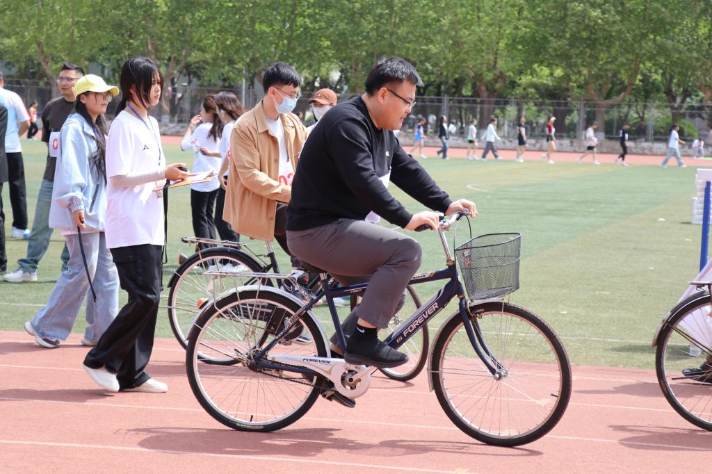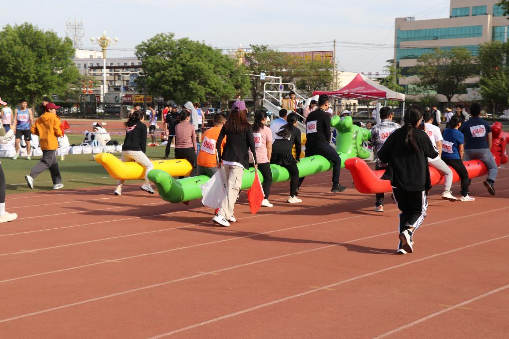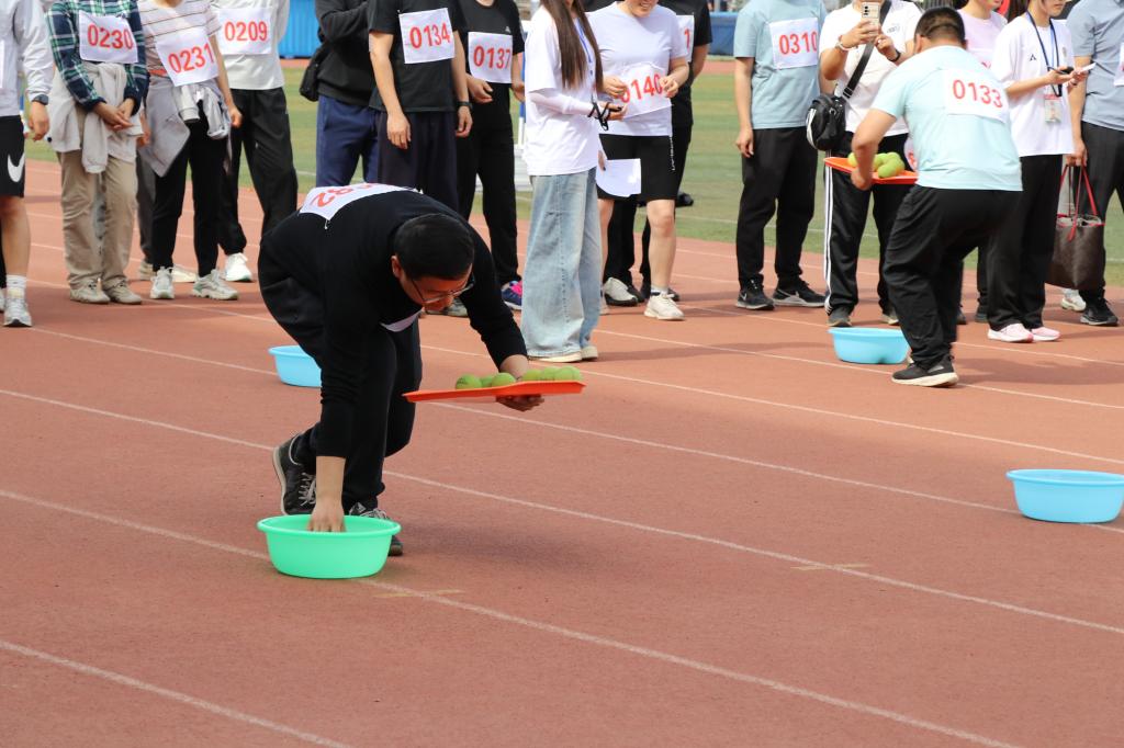 教职工化身“运动达人”,将赛场化为欢乐的海洋。“自行车慢骑”赛道上,王涛和陈圣栋两位老师屏气凝神,展现其平衡绝技,引发观众阵阵惊叹;“抢种抢收”环节,韩含、吕邈、刘春雷和杨庆四位老师化身“田间能手”,接力传递间尽显默契,用趣味竞技诠释劳动之美;“趣味毛毛虫”比赛中,陈亚青、钱虹、孙传波、袁光杰四人战队高喊着"一二一"的口号,以整齐划一的步伐驱动彩色“巨虫”奔向终点,将团结拼搏的体育精神演绎得淋漓尽致,取得了第九名的成绩。丹拥军老师以矫健步伐完成千米健步走,用实际行动诠释“生命在于运动”的真谛,最终获得第八名的成绩。通过赛场上的互动协作,教师们在欢声笑语中增进了情谊,凝聚起更强团队合力。
