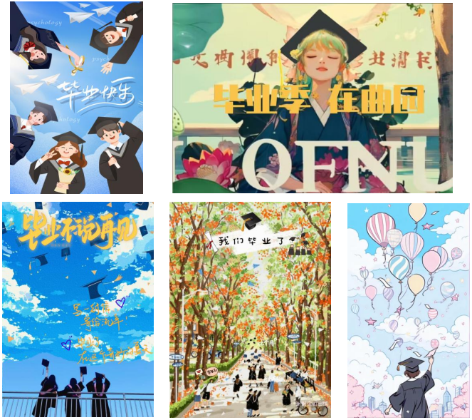 在同学们提交的作品中,画面布局合理,色彩运用巧妙,主题鲜明突出。无论是创意构思还是细节处理,都展现出较高水准,令人赞叹,充分彰显了同学们的艺术才华和创新精神。同学们精心制作的这些海报作品生动地体现了毕业季的浓厚氛围。画面中,校园的标志性建筑与身着学士服的身影交相辉映,飞扬的学士帽仿佛承载着梦想即将启航。
