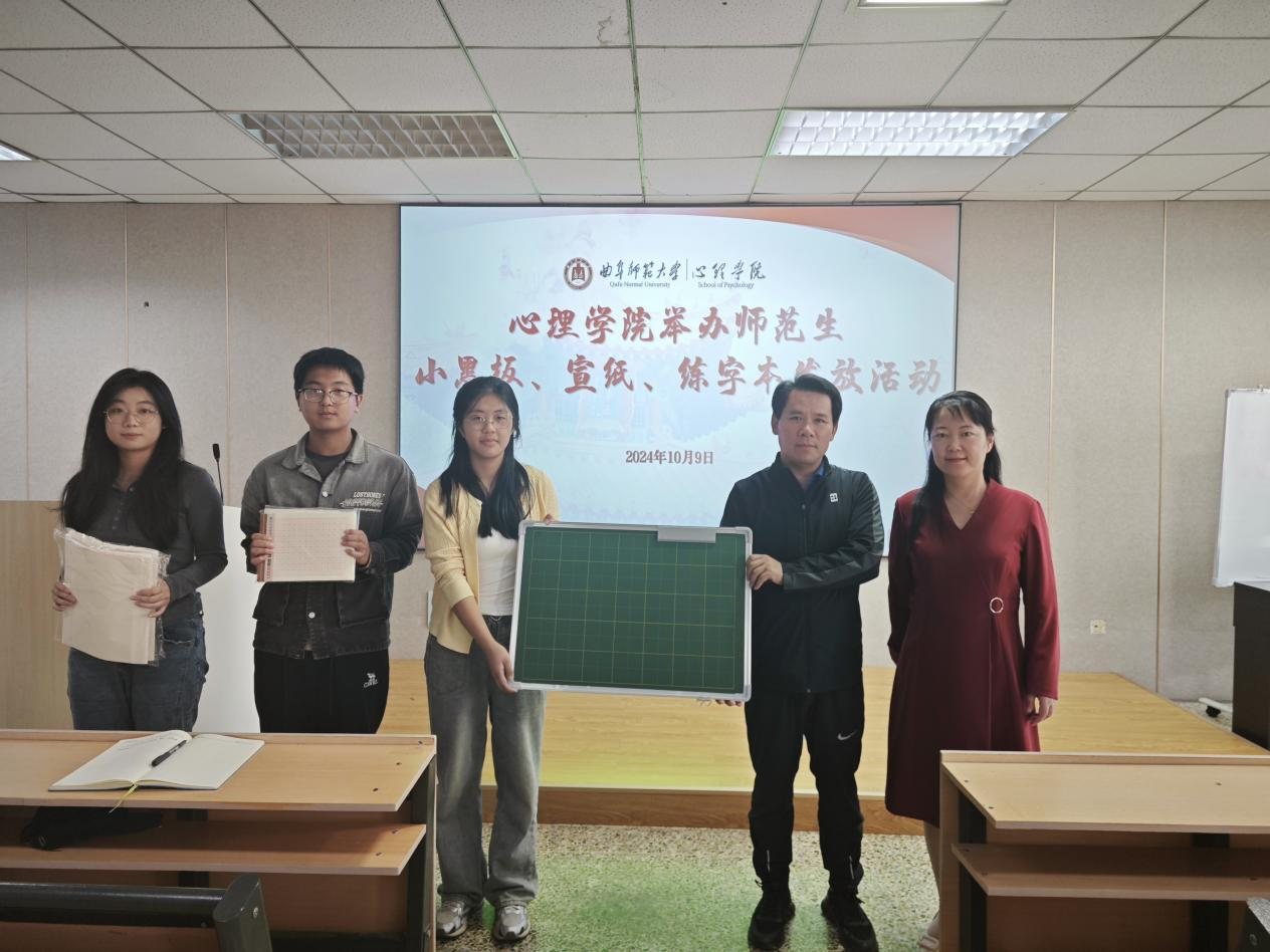 415教室举办了师范生小黑板、宣纸、练字本发放活动。院长何文广、副院长李海青出席本次发放仪式,金沙赌场网站