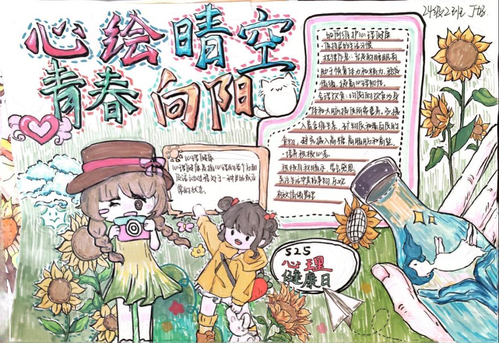 本次活动的成功举办,不仅为同学们提供了展示艺术才华与表达内心情感的平台,更重要的是,通过创作与分享,引导学生主动关注心理健康,学会用积极的方式应对心理困扰。一幅幅精美的手抄报,如同一个个心灵窗口,让大家看到了心理健康教育的多元可能,也让“心绘晴空,青春向阳”的理念深入人心。许多同学表示,在参与过程中,不仅收获了创作的乐趣,更对心理健康有了全新的认识,未来将以更加阳光的心态面对学习与生活。