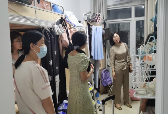 党委书记罗文伟、院长何文广、党委副书记朱伟卫、副院长李海青、副院长王晓明、团委书记赵旭涛、辅导员李令青、辅导员贺现网、教务员杨加芹、辅导员钱虹深入学生宿舍,与返校学生进行了亲切的交流。