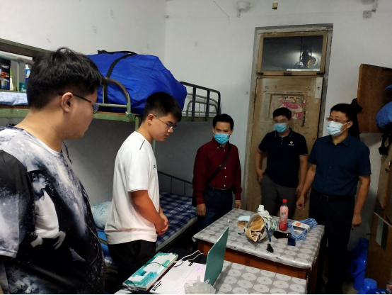 党委书记罗文伟、院长何文广、辅导员贺现网走访学生宿舍