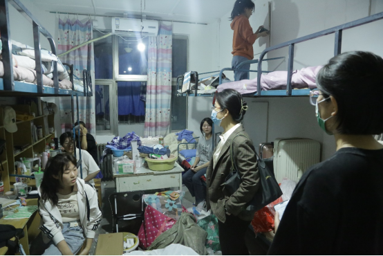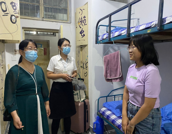 2022级女同学进行交流,与同学们心贴心沟通,仔细检查了宿舍内的各项基础设施,提醒同学们注意身体和宿舍安全等,并给新生提出舍友和睦相处、互帮互助、监督学习的建议,表示会尽最大努力为新生打造良好的宿舍环境,为新生带来家的感觉,并希望新生调整心态、适应校园生活,及时全身心地投入到学习生活中去。