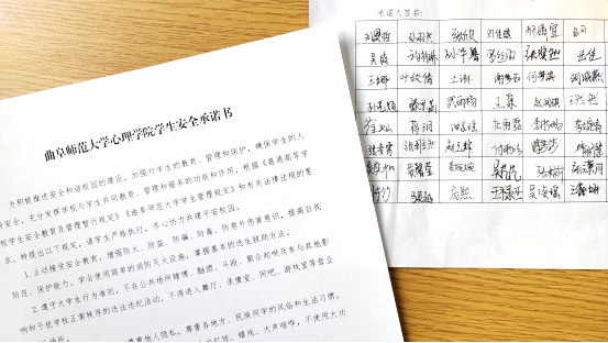学生安全承诺书》,促使同学们提高安全意识,让每一位同学实现在思想上从“要我安全”到“我要安全”的转变。
