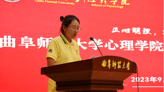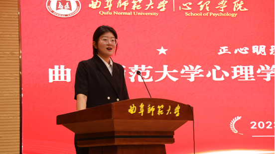 优秀在校生代表、第二届学生会主席刁子桐发言。刁子桐寄语2023级师弟、师妹们珍惜大学时光,打破高中时对大学错误的刻板印象,既要目标高远、学海泛舟,又要培养兴趣、强化能力,在加强专业学习的同时,积极参与创新创业和竞赛活动,踊跃投身团委学生会等个人发展的有力平台,并用心理学的视角去看待周围的世界,保持热情、踏实前行,勇于行动、不留遗憾。