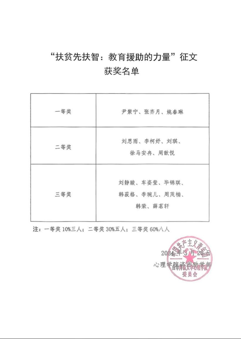 济困助学部按照标准仔细审核上交作品,最后统一评比,公布并通知获奖同学领奖。参赛同学纷纷表示,此次征文活动不仅让自己认识到教育的重要性,同时也加深对教育扶贫的理解,在日后的学习过程中更会以前辈为榜样,提高自我修养与素质,投身于教育扶贫的工作中去,挥洒自己的青春力量。
