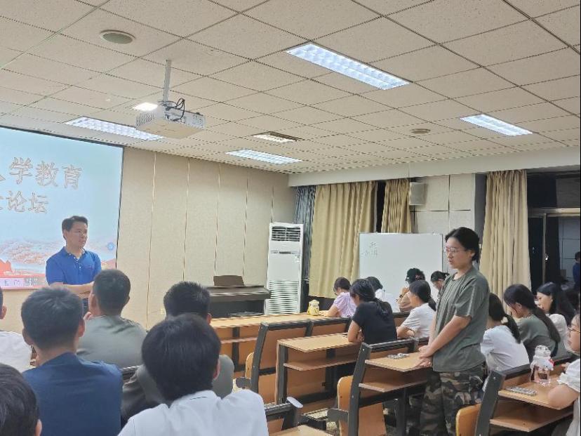 在学术研究、师资构建等方面的卓越成就,并深刻阐述了其背后的教育理念与责任担当。随后,何文广聚焦于学生关切的专业成长与个人发展议题,精准剖析心理学领域发展趋势,勉励新生顺应时代潮流,勇于创新探索,拓宽心理学研究的边界。他结合自身丰富的教学与科研经验,为新生提供了高效学习策略与职业规划的权威指导,助力其科学规划其大学生活及未来职业道路。最后,何文广以严谨而温暖的态度逐一回应新生关于专业学习路径、科研实践机会及就业前景等多元化提问,不仅精准解答了同学们的困惑,更激发了学子们对心理学专业的浓厚兴趣与崇高追求。