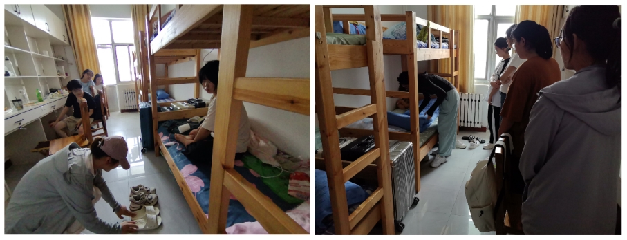 活动期间,主席团成员为新生展示宿舍内务标准示范照片,并详细介绍床铺被褥、洗漱用品及阳台物品等摆放要求以及应当注意的违规电器、晚归或夜不归宿等问题。并且指出往届卫生检查中出现的问题,通过亲身示范带领新生共同解决问题,加深印象,为日后的内务整洁工作提供有力指导。