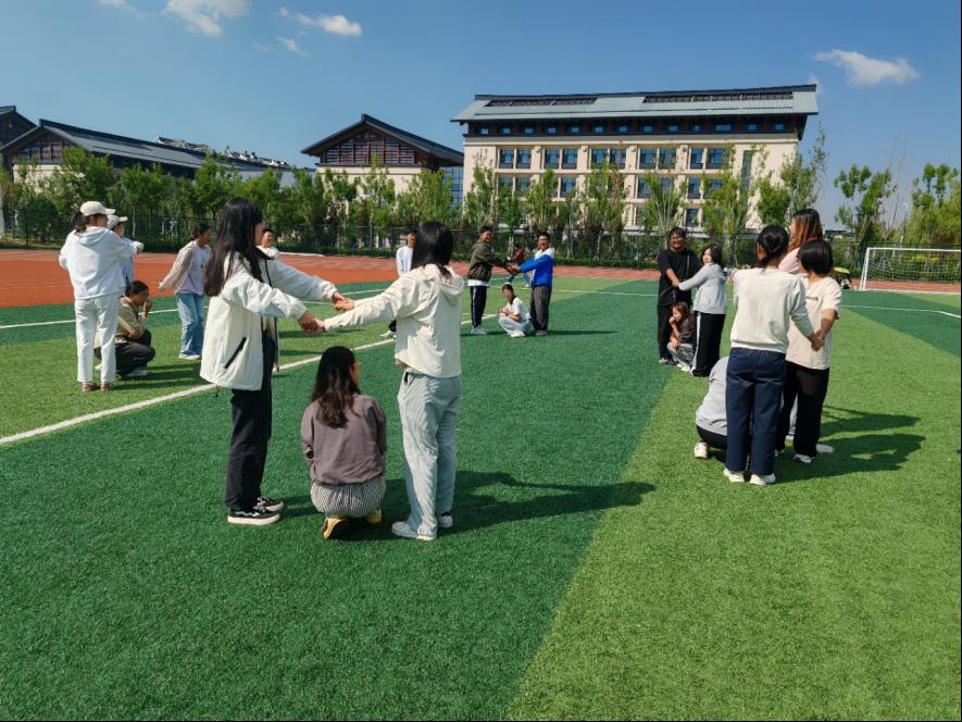 2024级新生团体心理辅导活动于新校区操场举行,2024级全体本科生积极参与。