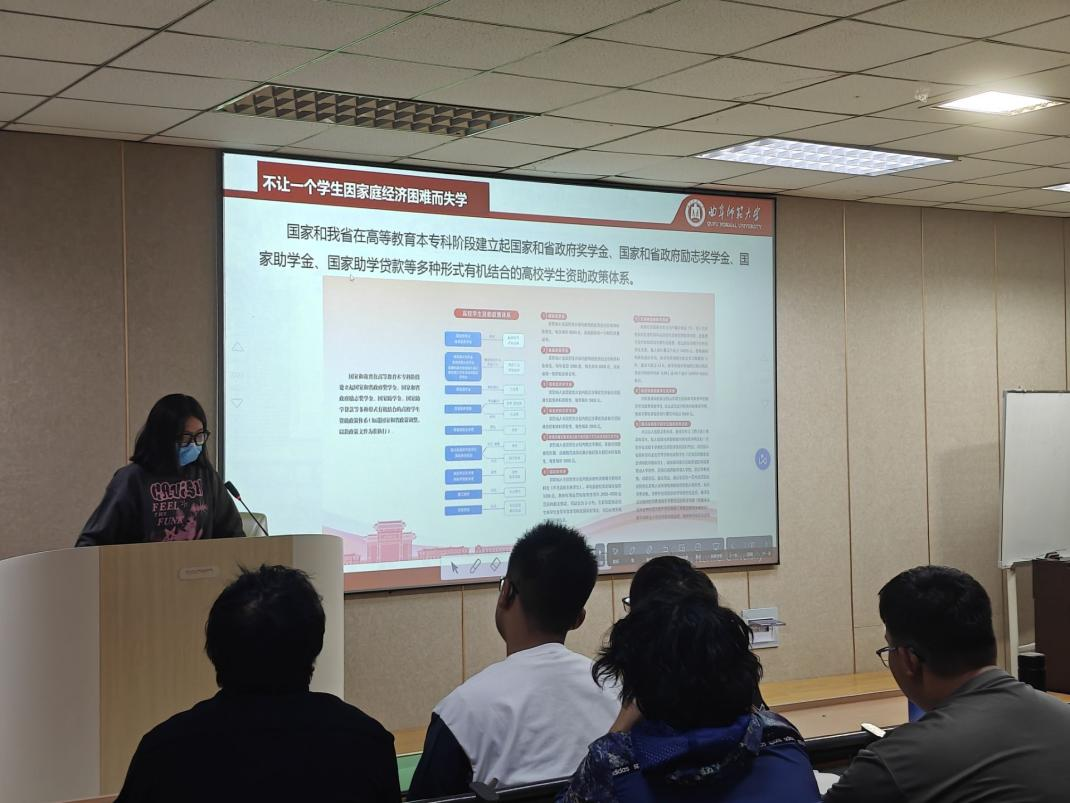 本次宣讲活动聚焦国家主要资助政策和地方主要资助政策两方面展开讲解。首先开展的资助政策介绍环节中,济困助学部成员为同学们详细介绍资助政策种类、申请条件等,深入贴近同学们的真实情况,为同学们提供了细致、准确的信息。随后开展的问答环节中,济困助学部的同学热情回应同学们提问的各类问题,并针对相应问题进行详细解答。