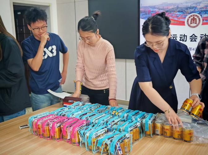 老师们为参赛的运动员发放了参赛补给,包括运动饮料和营养品,确保他们在比赛中保持充沛体力。