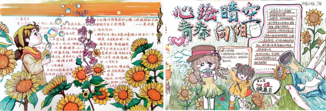 本次活动以"心绘晴空,青春向阳"为主题,鼓励师生用创意笔触描绘美好心灵,通过手绘形式呈现。参赛同学以丰富的想象力和独具匠心的创造力,将对心理健康的深刻理解融入手抄报创作之中。无论是用绚丽的色彩描绘内心的宁静与希望,还是通过简洁有力的文字传递温暖与力量,亦或是用巧妙的构图展现战胜心理困境的决心,都能成为表达自我、引发共鸣的载体,同学们以图文创作展现心灵感悟,以艺术实践深化心理认知,以校园行动传递积极心态。