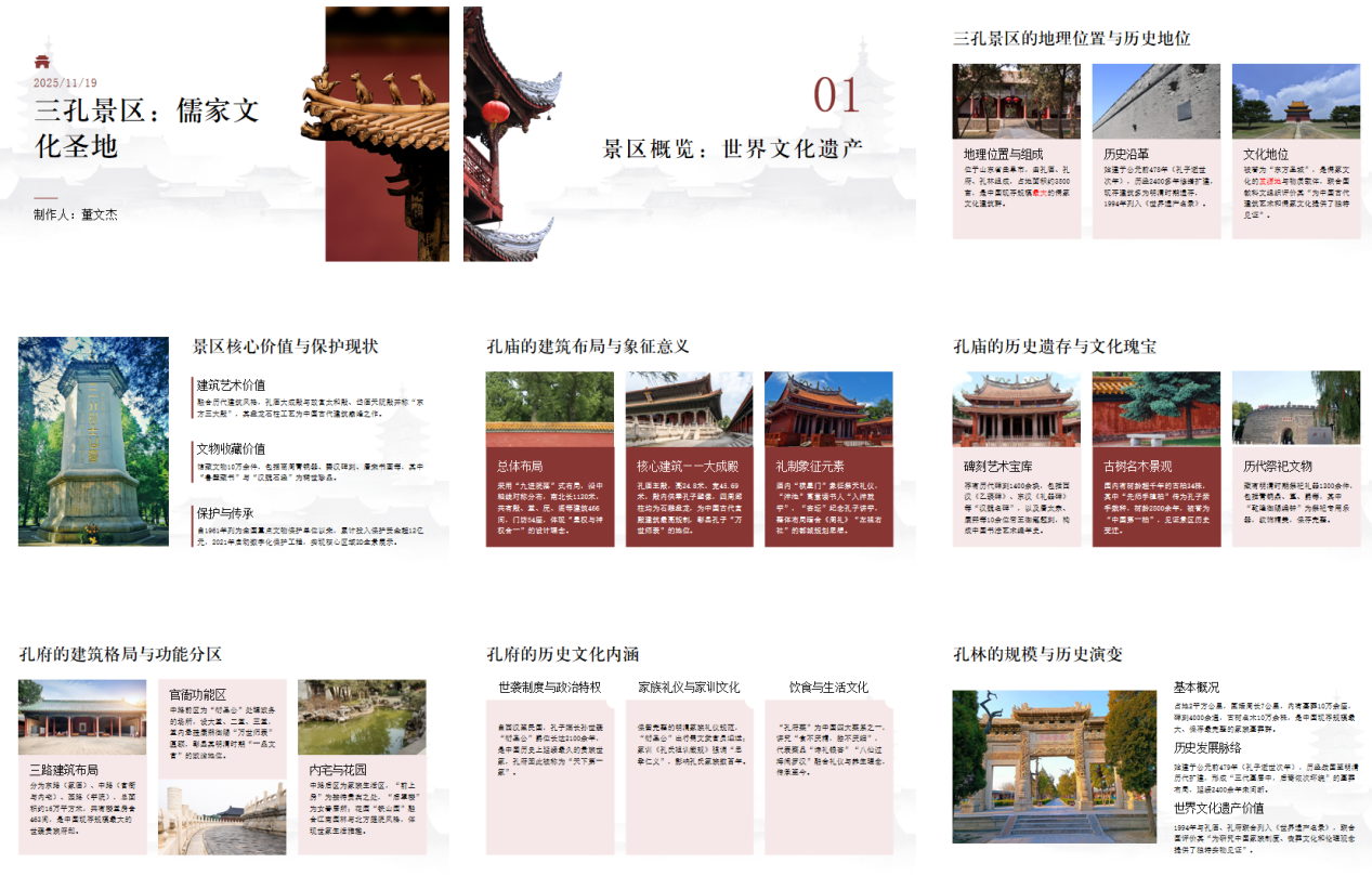 一经发布,就吸引各年级学生踊跃参与,他们以讲解员的身份围绕“三孔”、尼山圣境、孔子博物馆等文化景点进行创作,且提交的原创PPT图文并茂、详细生动。活动结束后,金沙赌场网站