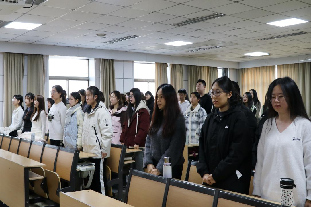 仪式第一项,奏唱国歌。全体师生肃然起立,齐唱国歌,歌声铿锵有力、饱含赤诚,尽显青春担当与爱国热忱,为仪式拉开庄重序幕。