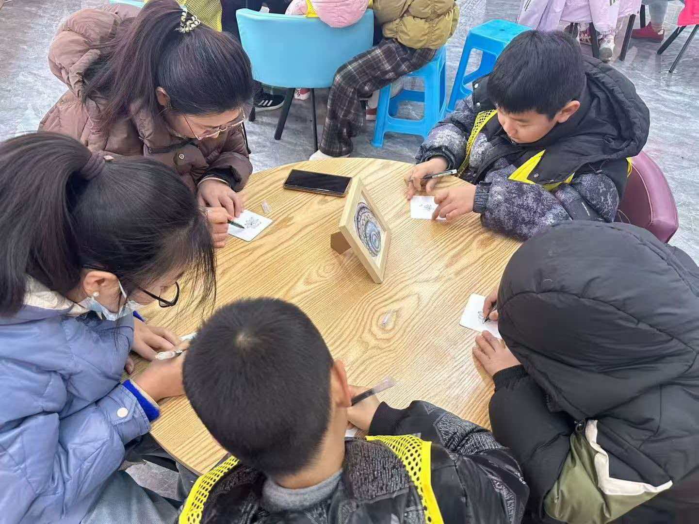 图1 实践队员与学生一起制作禅绕画