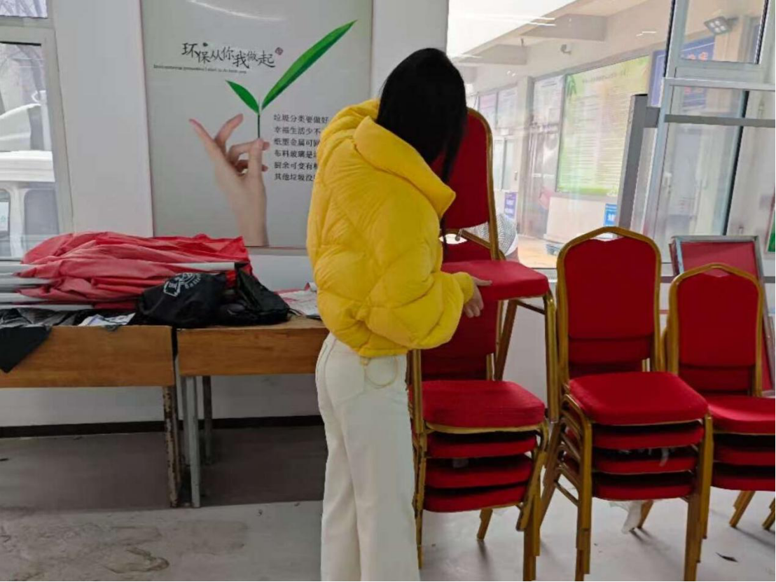图3“青春聚力兴桑梓,实干笃行焕乡容”实践队员正在整理社区活动室的桌椅