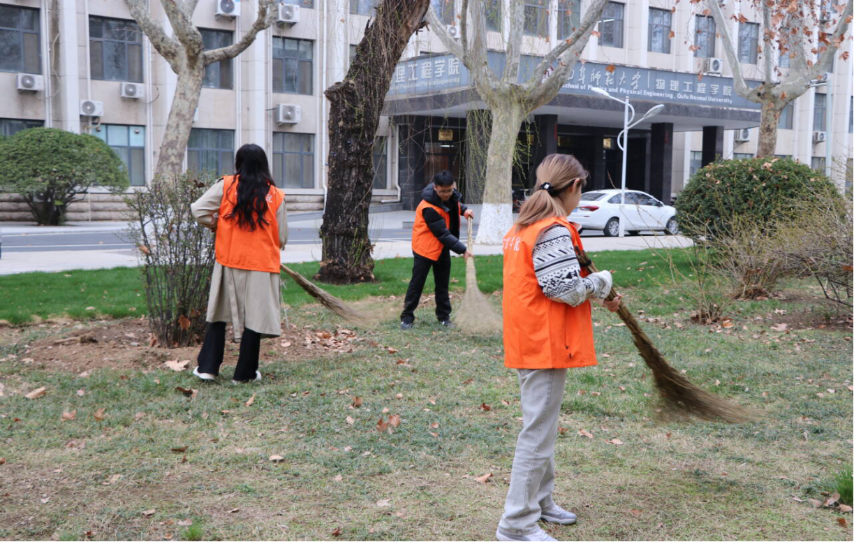 全体志愿者以高度的责任意识投身行动,合理分工、协同配合,对教学楼周边、公共走廊、绿化带等区域进行全面清洁,重点清理垃圾杂物、卫生死角与枯枝落叶,同时擦拭公共设施、开展护绿行动,切实提升校园环境整洁度与美观度。活动中,志愿者们热情高涨、干劲十足,将吃苦耐劳的优良作风、团结协作的集体精神融入每一个服务环节,用双手守护校园美好,用实干诠释志愿内涵。