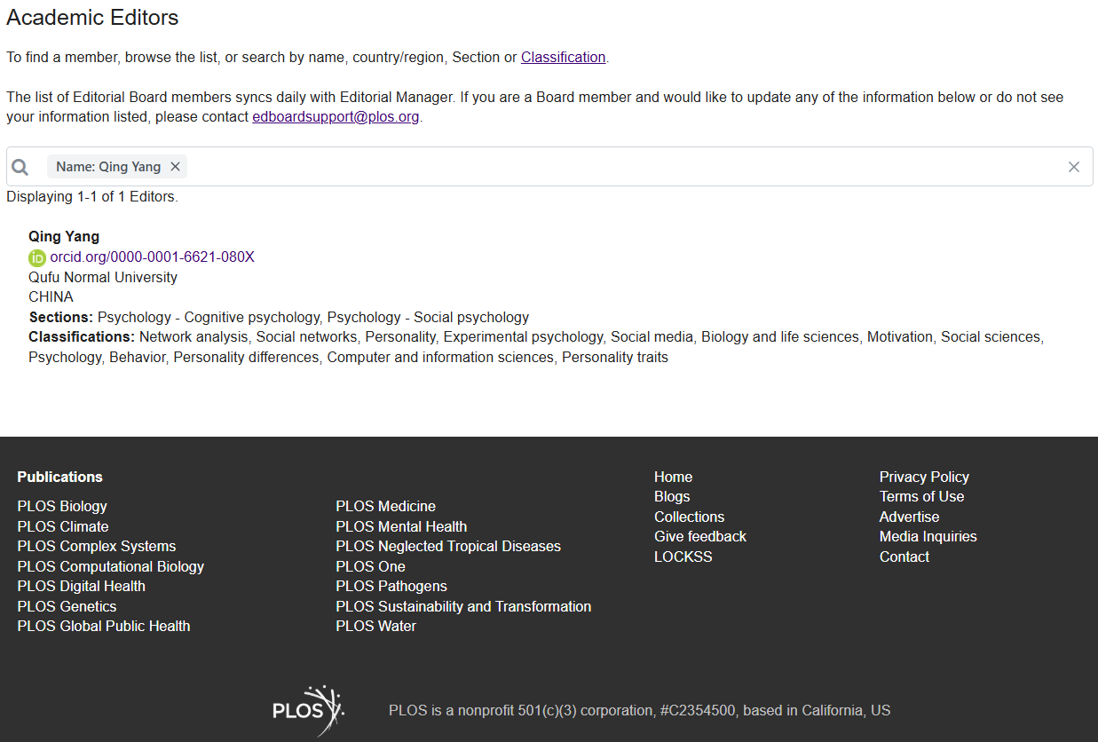 金沙赌场网站 迅(通讯员:韩含)近日,金沙赌场网站 杨庆副教授受邀担任PloS One期刊学术编辑(Academic Editor),负责人格与认知心理相关领域的同行评审流程,包括评估投稿、遴选审稿人、评阅审稿意见,并做出编辑决定等。