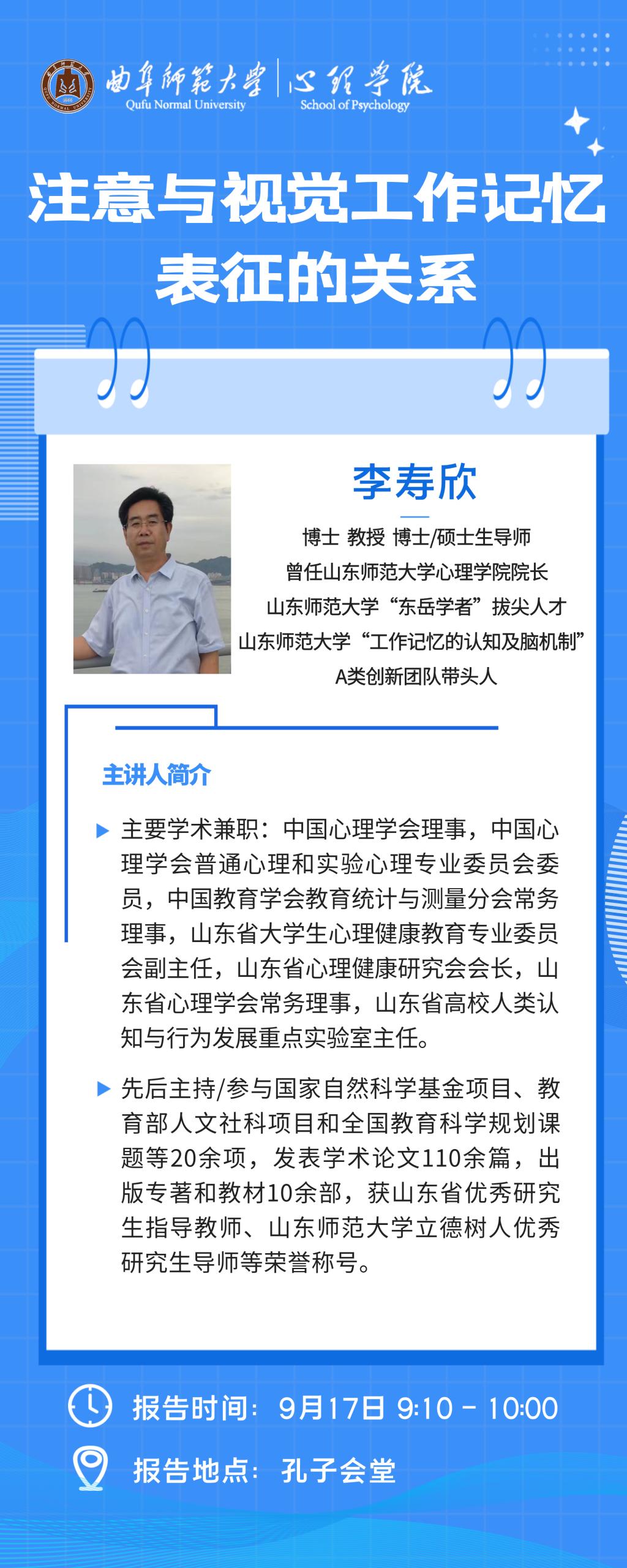金沙赌场网站 2023金秋学术报告暨"国榕讲堂"学术讲座(二)|李寿欣:注意与视觉工作记忆表征的关系