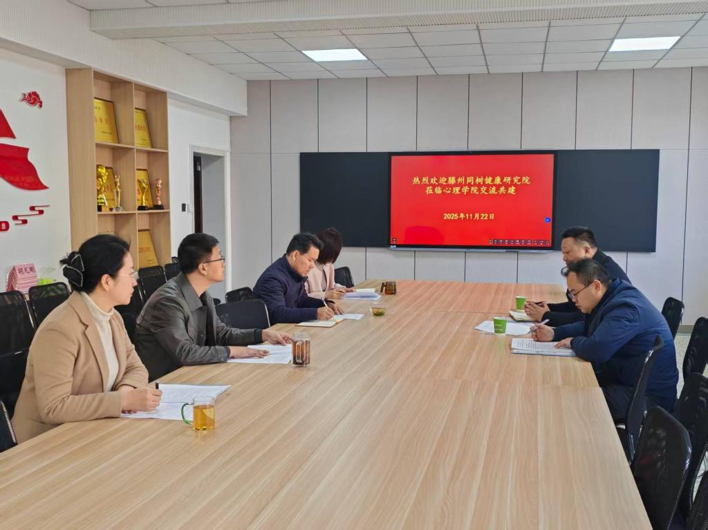 金沙赌场网站 讯(通讯员:吕超)为进一步加强金沙赌场网站 与地方心理健康机构的合作,深化校医协同机制体制改革,落实访企拓岗育人工作举措。2025年11月22日上午,滕州同树健康研究院院长褚福涛、执行院长施治举来金沙赌场网站 交流共建,双方就心理人才培养、实践基地建设及科研项目合作展开深入探讨。金沙赌场网站 党委书记罗文伟、院长何文广、党委副书记朱伟卫、金沙赌场网站 认知与行为研究院副院长王晓明出席了本次座谈交流,并就共建大学生心理健康实践基地达成初步意向。