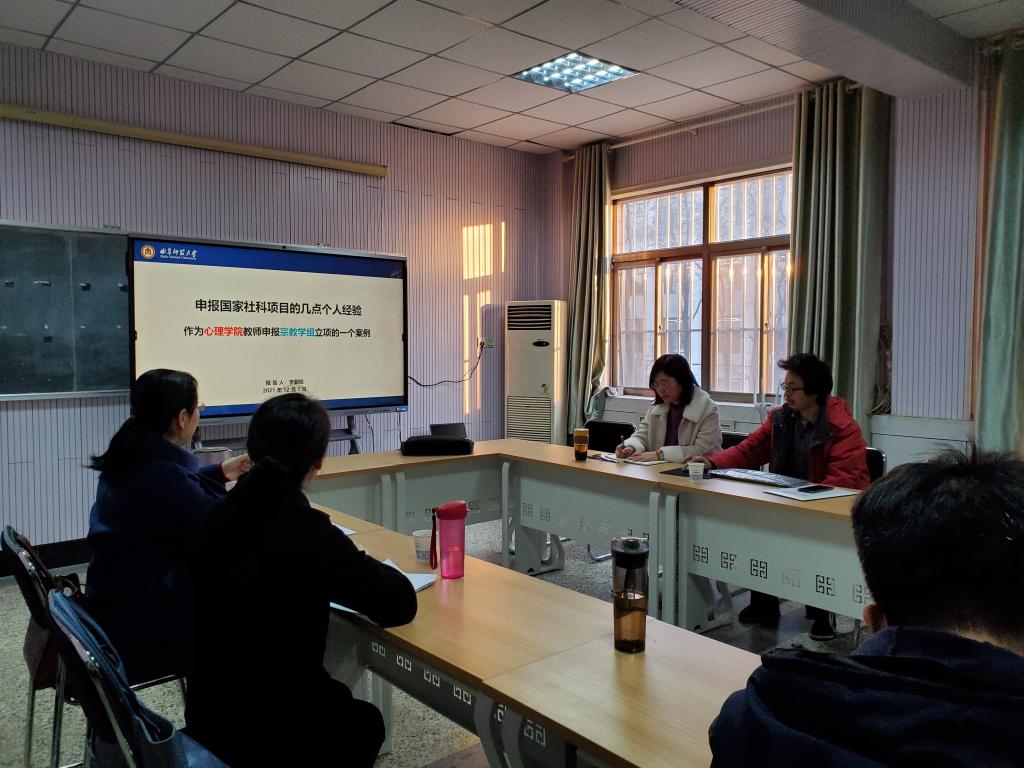 国家社科、自科基金项目申报交流会”。此次会议邀请了李朝旭教授、刘彦楼副教授和杨庆副教授分享项目申报成功经验,金沙赌场网站