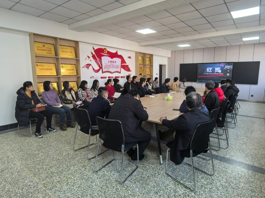 图 全体教职工大会集体观看宣传片
