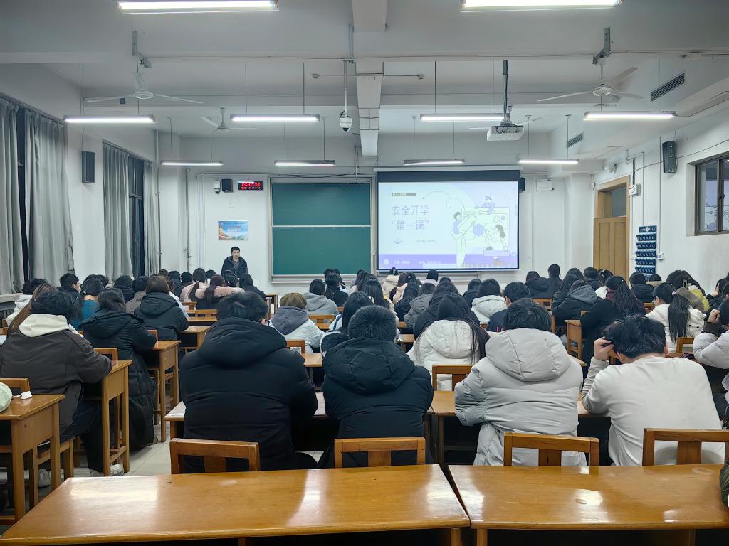 全体辅导员组织本年级全体学生开展安全开学“第一课”主题班会。辅导员围绕身心安全、财产安全、网络安全、交通安全等方面进行了讲解,重点强调了宿舍安全、实验室安全,提醒同学们从不能违章用火用电入手,切实化解安全风险隐患,做校园安全的模范践行者。