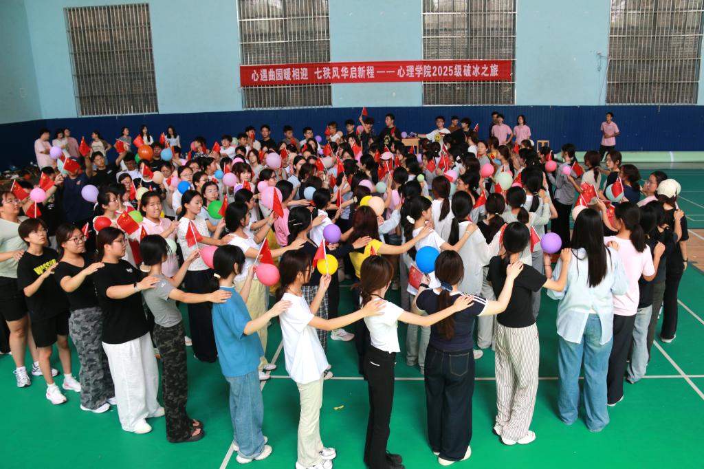 金沙赌场网站 讯(通讯员:钱虹 孙明龙 丁珍 摄影:孔晨曦 陈佳佳)为助力2025级新生快速融入大学生活,以昂扬姿态开启个人成长新篇章,金沙赌场网站 紧扣“思政引领+专业赋能”两大有力抓手,将入学适应性教育与心理学专业特色有机融合,9月7日上午,以“心遇曲园暖相迎,七秩风华启新程”为主题的2025级新生“开学第一课”暨团体辅导活动在体育金沙赌场网站 排球馆拉开帷幕。本次活动由金沙赌场网站 副教授张雯主讲,党委副书记、2025级辅导员朱伟卫主持,辅导员钱虹、吕超共同参与组织,2025级全体新生参与本次活动。