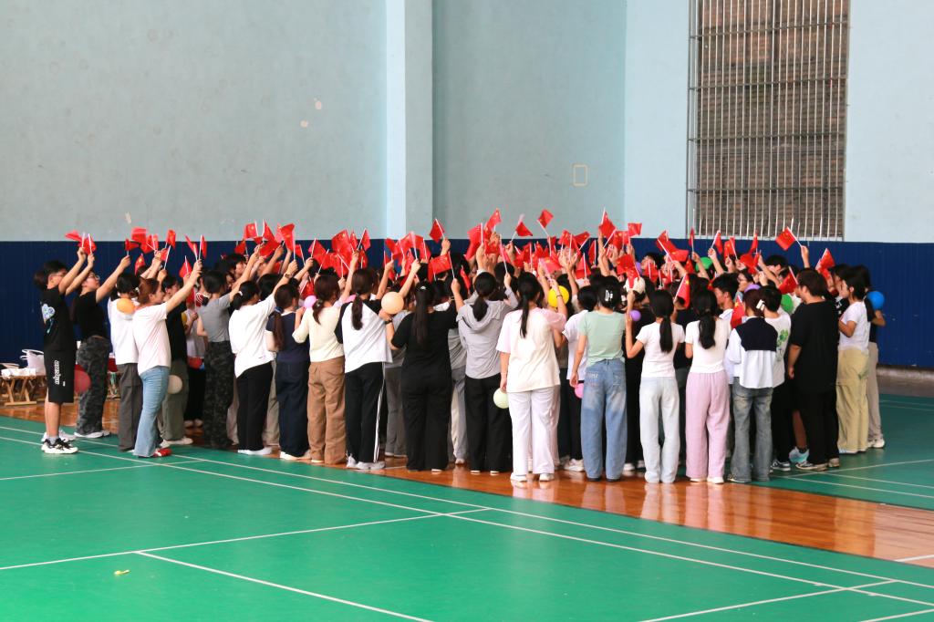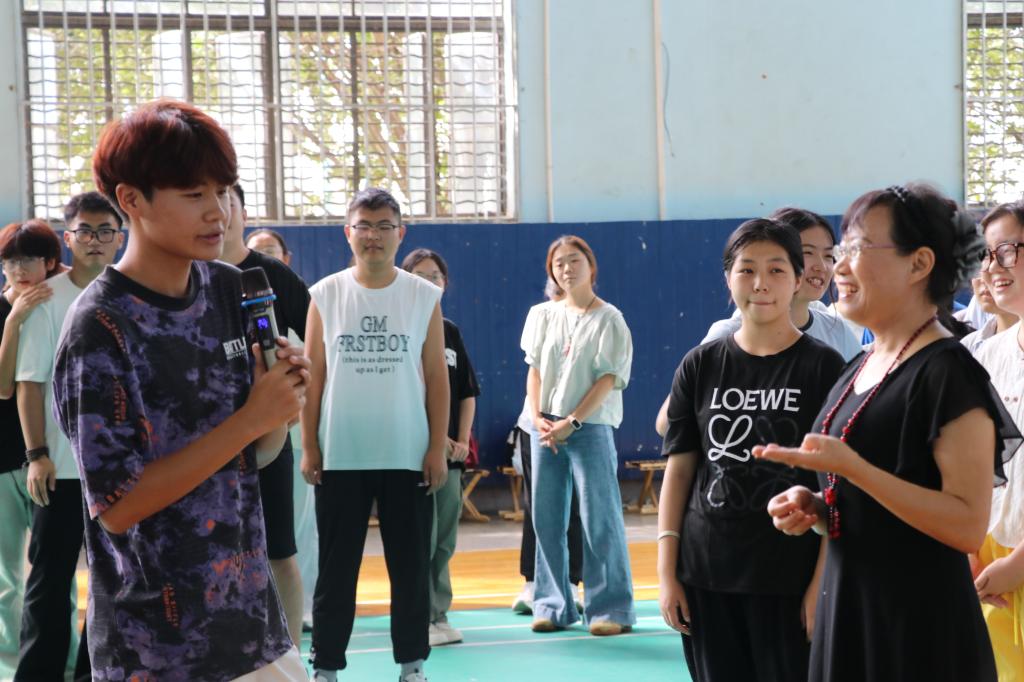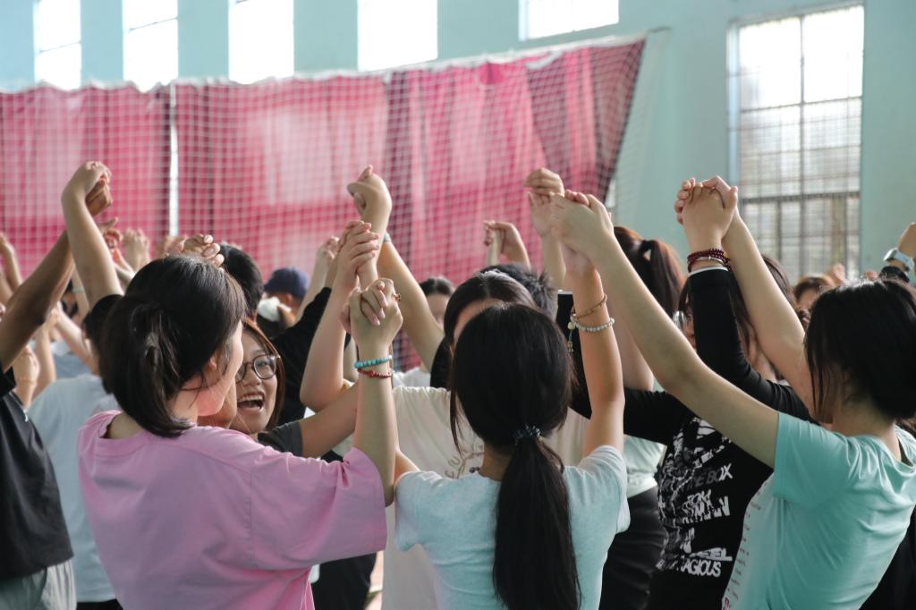 “个性走秀”和“《同一首歌》手势舞”将活动的氛围推向了高潮。通过“双人+团体+群体”的递进式活动设计,在动感悠扬的音乐中,将个别同学间的“小范围联结”逐步扩大为“集体归属感”,让新同学在团队协作中消除陌生感、感受支持力,充分体验到集体的包容和托举。张雯老师强调:“肢体语言是情绪表达的重要载体,这些活动不仅能缓解新环境带来的压力,更能帮助学生在集体中建立归属感。”活动过程中,新同学们从最初的拘谨逐渐变得放松,眼神交流更加自然,手势配合也愈发流畅,让彼此的温度更加贴近。