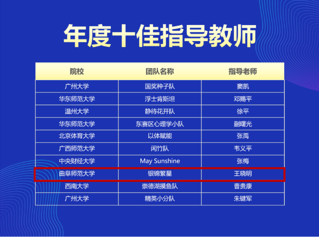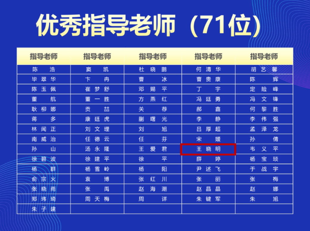 获得“最佳院校组织奖”,王晓明副教授获得“优秀指导老师”称号和“年度十佳导师”称号。