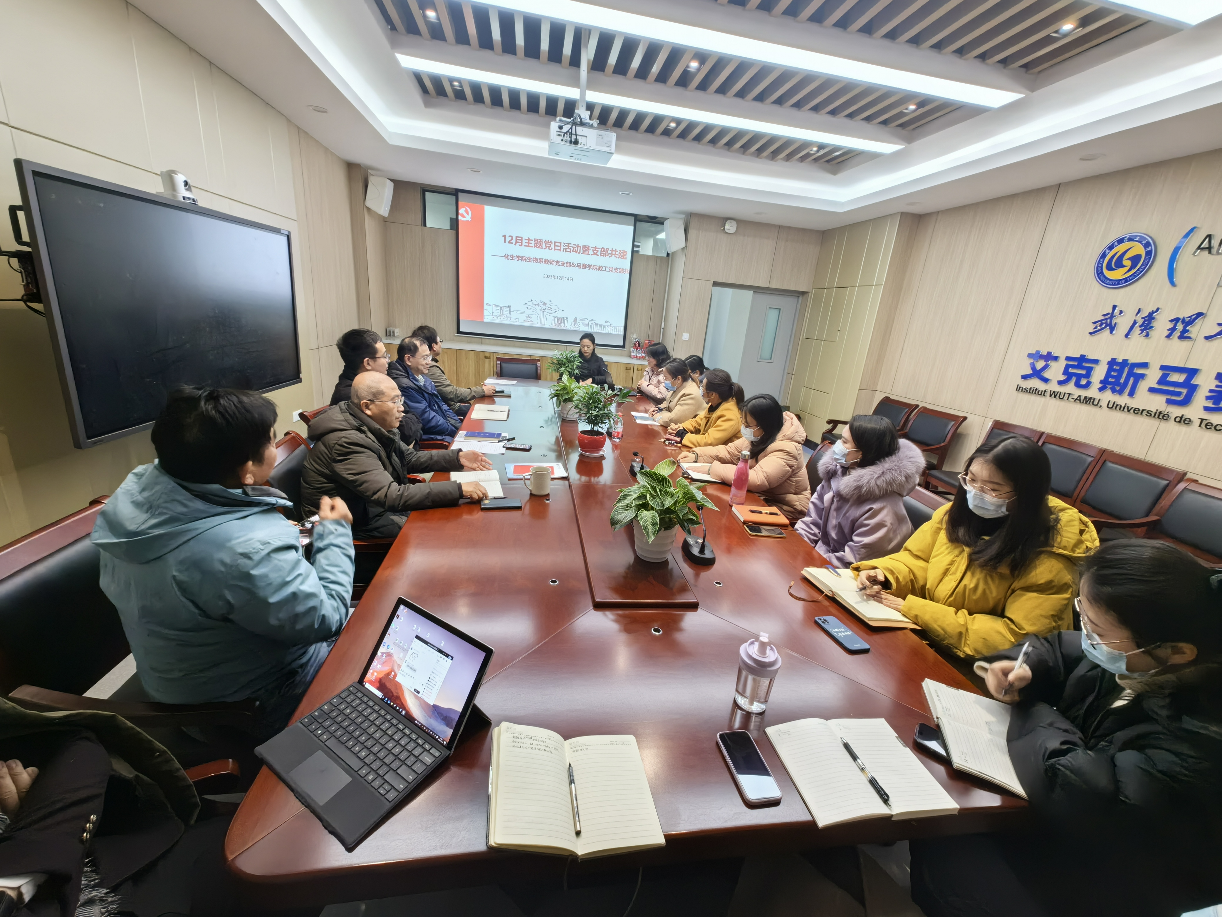 2023年12月14日,马赛金沙赌场网站 教工党支部联合化生金沙赌场网站 生物系教师党支部在S304会议室共同开展支部共建暨12月份主题党日活动,两个党支部全体党员与马赛金沙赌场网站 教职工共20余人参加,马赛金沙赌场网站 副院长袁国华、化生金沙赌场网站 副院长谢浩以普通党员身份全程参加。本次主题党日活动由化生金沙赌场网站 生物系教师党支部书记班宜辉同志与马赛教工党支部书记余艳阳同志联合主持。